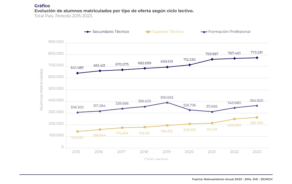 Además, este año se observó un leve aumento en la matrícula, que alcanzó los 19.100 estudiantes en la secundaria técnica o agropecuaria media, y que “por primera vez superó el 40% en inscripción de mujeres en la ETP”, que rozó el 43%.