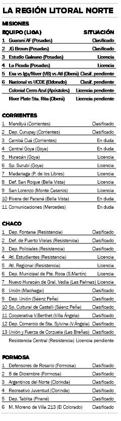 Todavía quedan muchas cuestiones por resolver, más licencias por confirmar y habilitaciones por llegar. Por lo pronto, la región Litoral Norte, la que es integrada por los equipos misioneros, tiene hasta el momento cerca de 30 quipos, contando con Chaco, Corrientes y Formosa, pero ese número podría ser más elevado en los siguientes días.