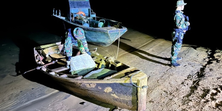 Se dirigieron hacia el lugar donde la embarcación tocó tierra y no hallaron al canoero. Se presume que advirtió la presencia de los uniformados y decidió escapar del lugar y dejar abandonada la carga.