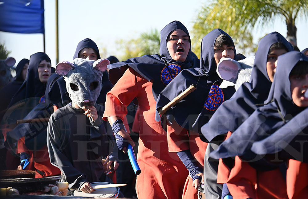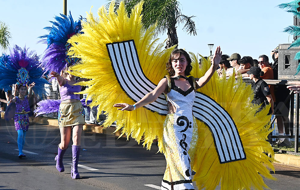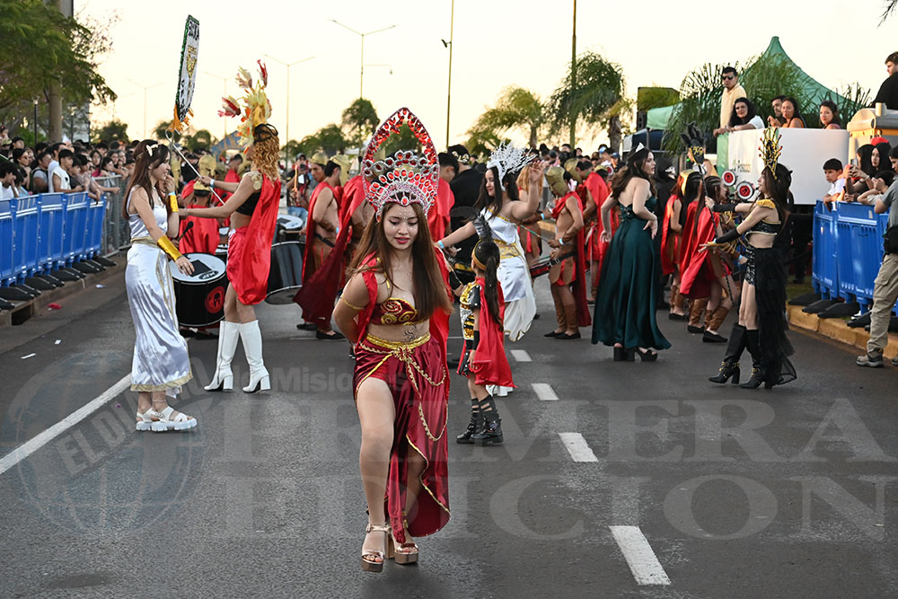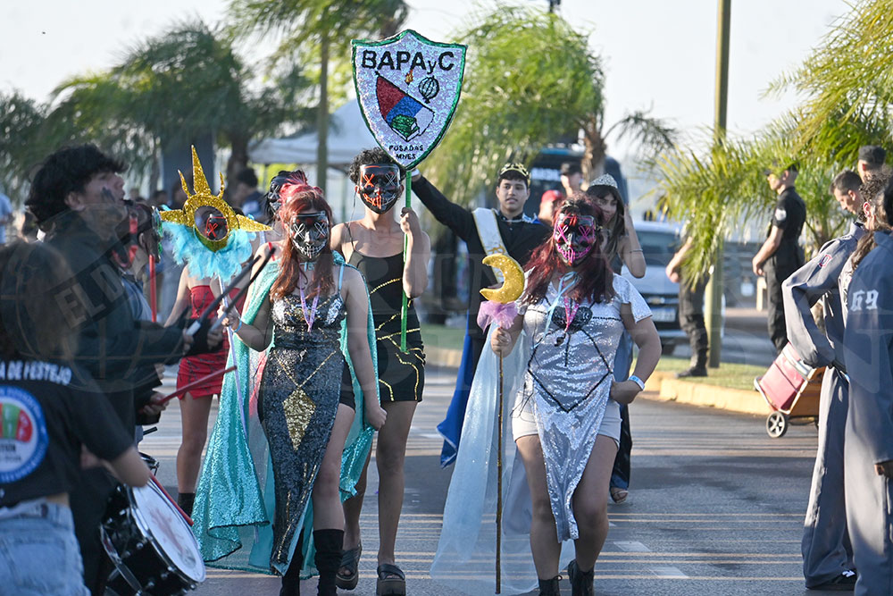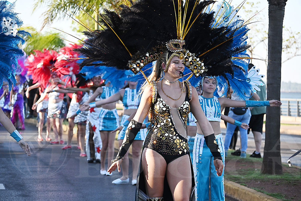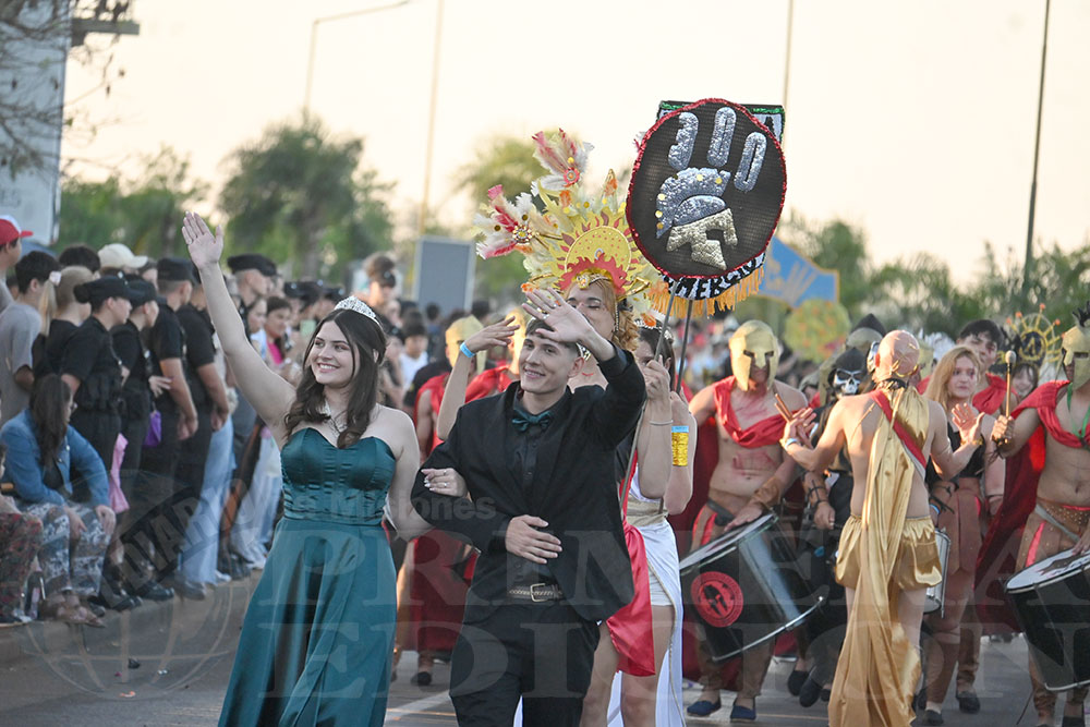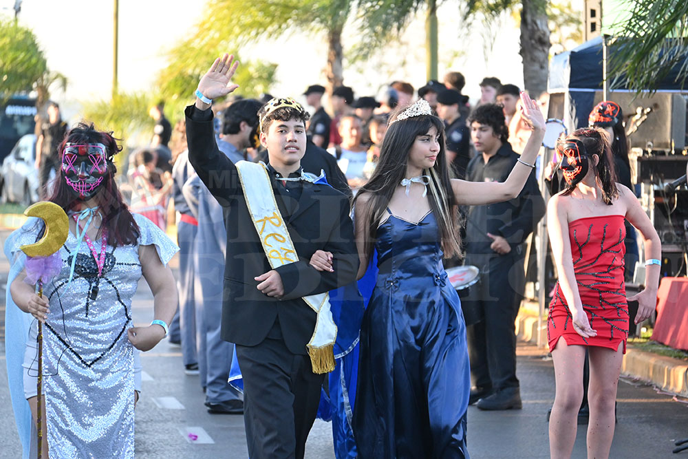 Más tarde fue el turno del BOP N°9, cuyos representantes ofrecieron al público una coreografía denominada “El Reino de los Cuentos: La Alianza Mágica”. Su ritmo y colorido recibieron encendidos aplausos, al igual que sus soberanos, Juan Pablo Agustín Maciel Gauna y Tatiana Cantero Rojas. Esto fue solo parte de la gran fiesta, que -si el tiempo lo permite- continuará esta tarde a partir de las 17 en el cuarto tramo de la costanera posadeña.