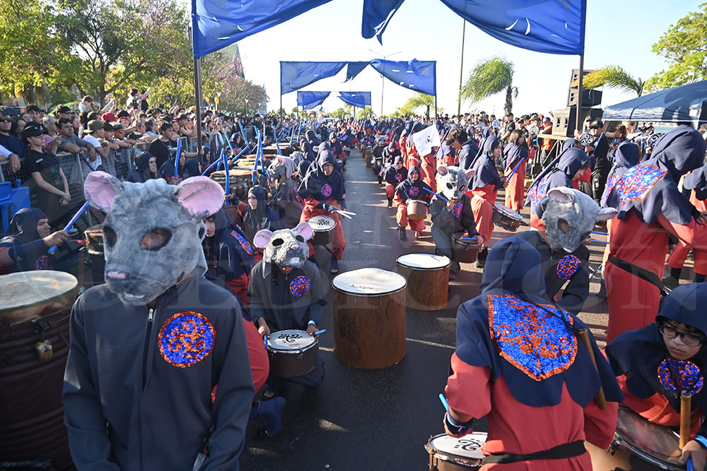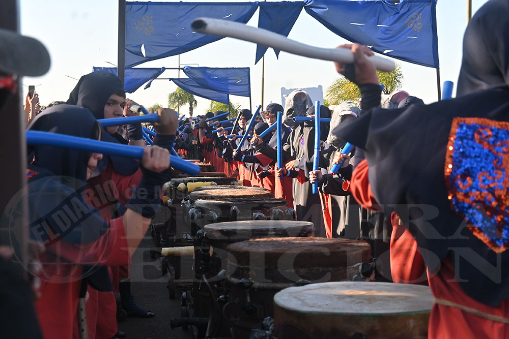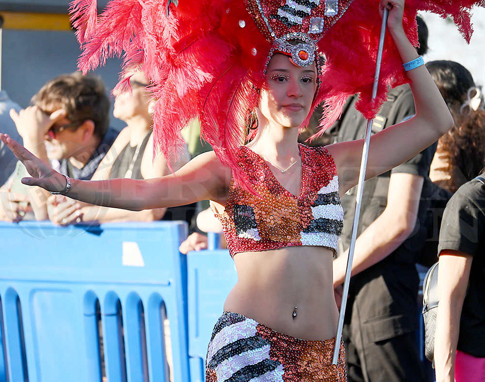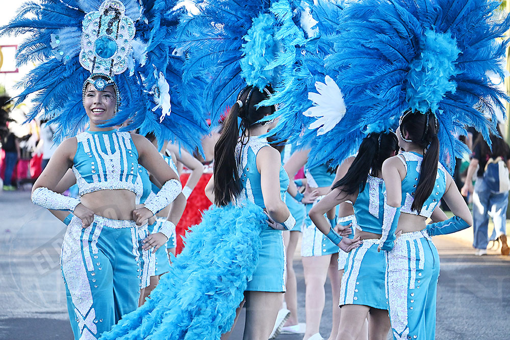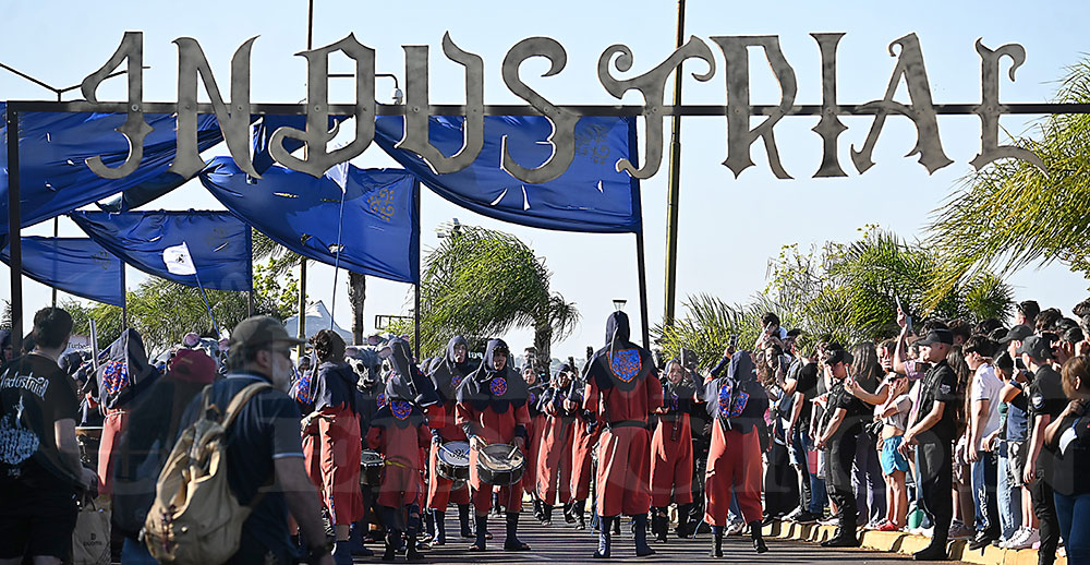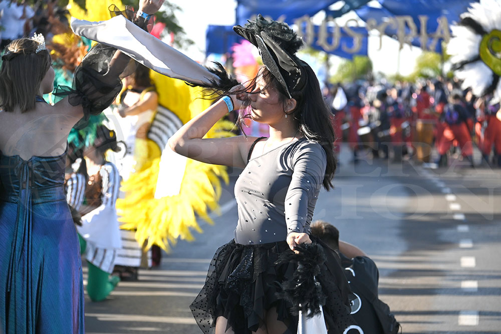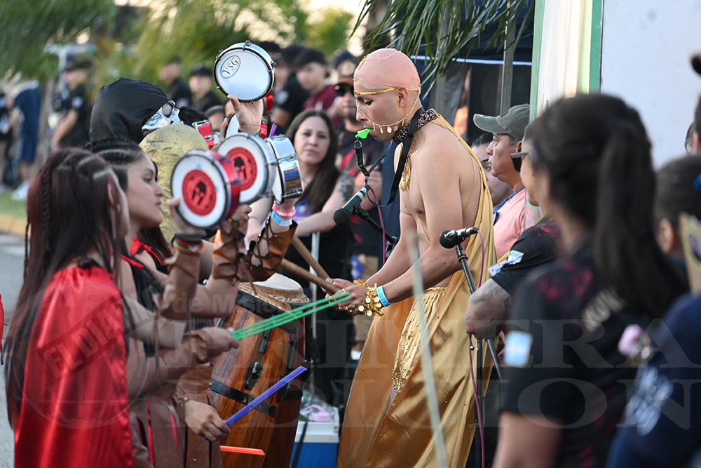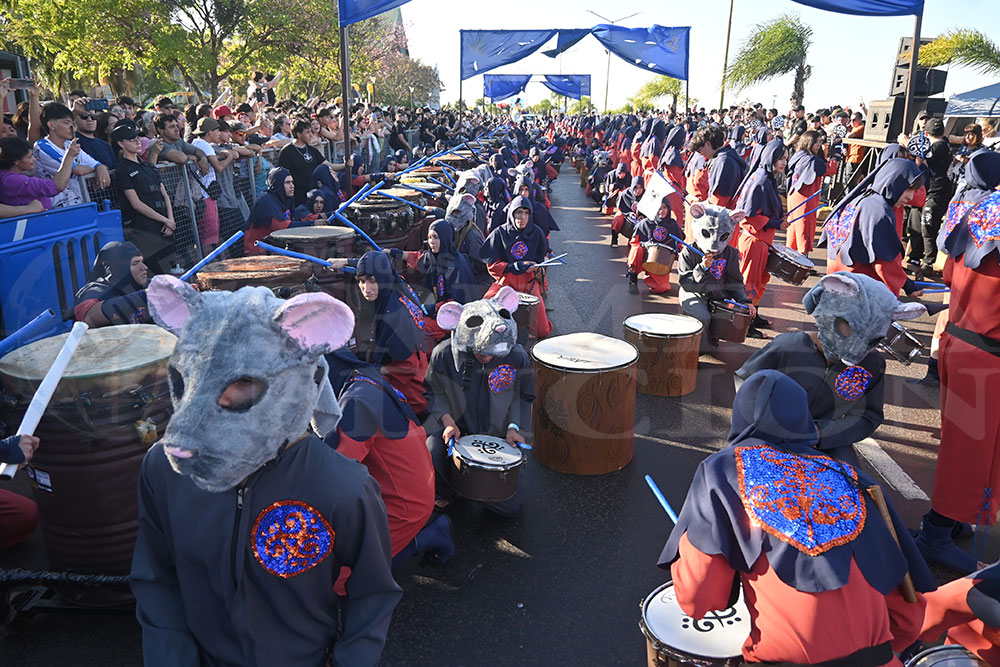 A las 17 se levantó el telón con el sonido de los tambores, que encendieron los aplausos y el grito del público para recibir a los alumnos de la “Indu”, que presentaron “La melodía de los Miserables”, una propuesta que promete convertirse en protagonista de esta edición. Fue un gran despliegue de plumas, lentejuelas y ritmo junto a sus soberanos, Ignacio Medina y Nicole Giersztunovicz.