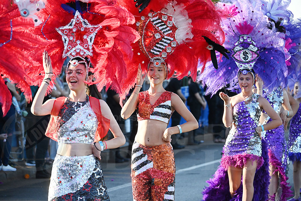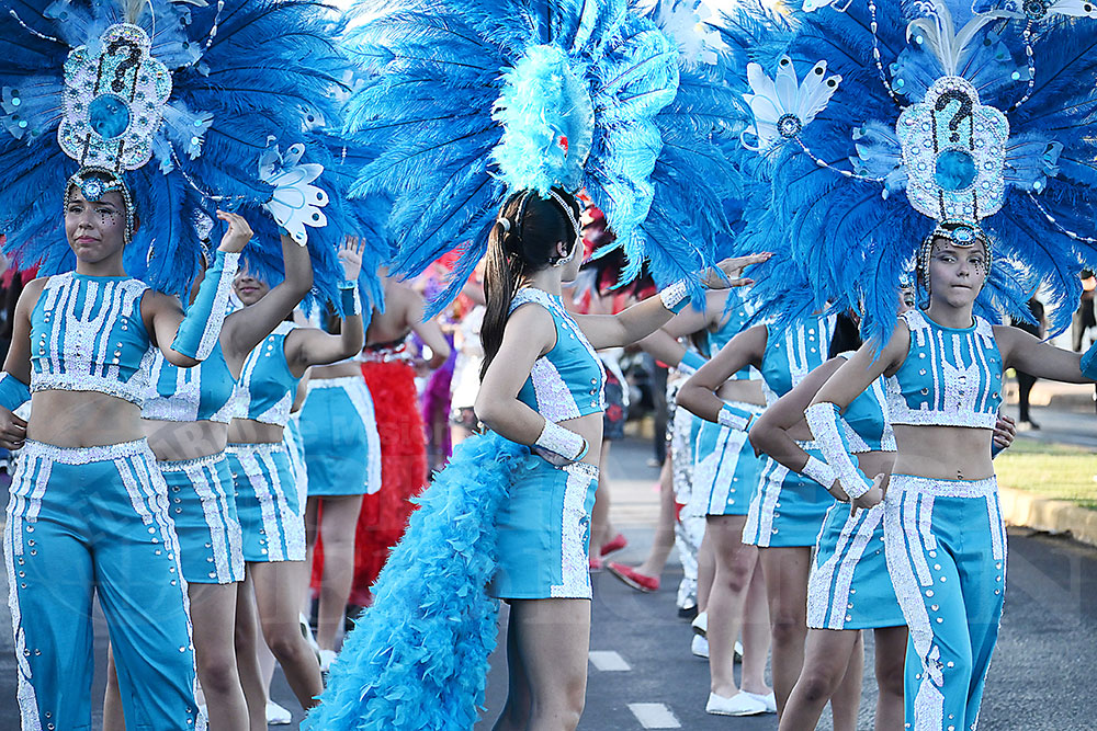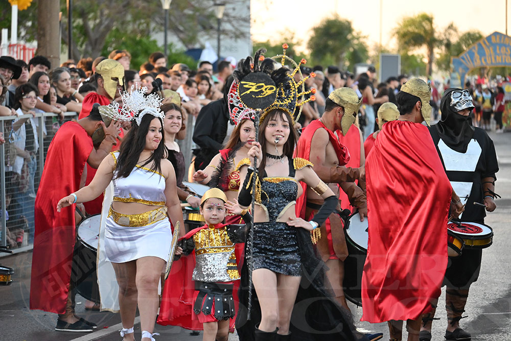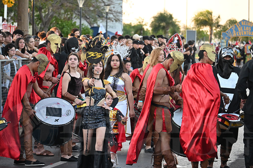 Otro de los animadores de la jornada fue la Comercio N°18, que presentó la temática de “300”, en referencia a la popular película de historia y ciencia ficción que recrea la batalla entre Esparta y Persia. Aunque en esta oportunidad sus protagonistas no portaron espadas ni escudos, desplegaron todo el ritmo y la alegría, acompañados por sus reyes José Rejala y Juana Bakanczuk.