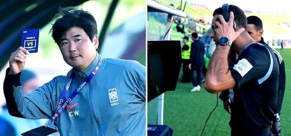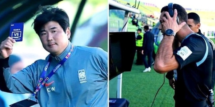 Este nuevo cambio implementado por la FIFA implica que son los entrenadores quienes tienen la potestad de pedir la revisión de ciertas jugadas. En este caso, fue el DT coreano, Lee Chang-Won, quien usó la tarjeta verde para que los árbitros chequeen una posible falta sobre un jugador de su equipo en el área rival. Finalmente se constató con el uso del VAR que no hubo infracción, por lo tanto no se le concedió el penal al conjunto asiático.
