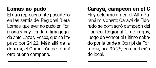 En ese sentido, también participará del mismo Tacurú de Posadas, que el sábado avanzó a la final del Regional B; y Caza y Pesca de Formosa, que irá por el título de esa categoría luego de vencer ayer en casa a Lomas.