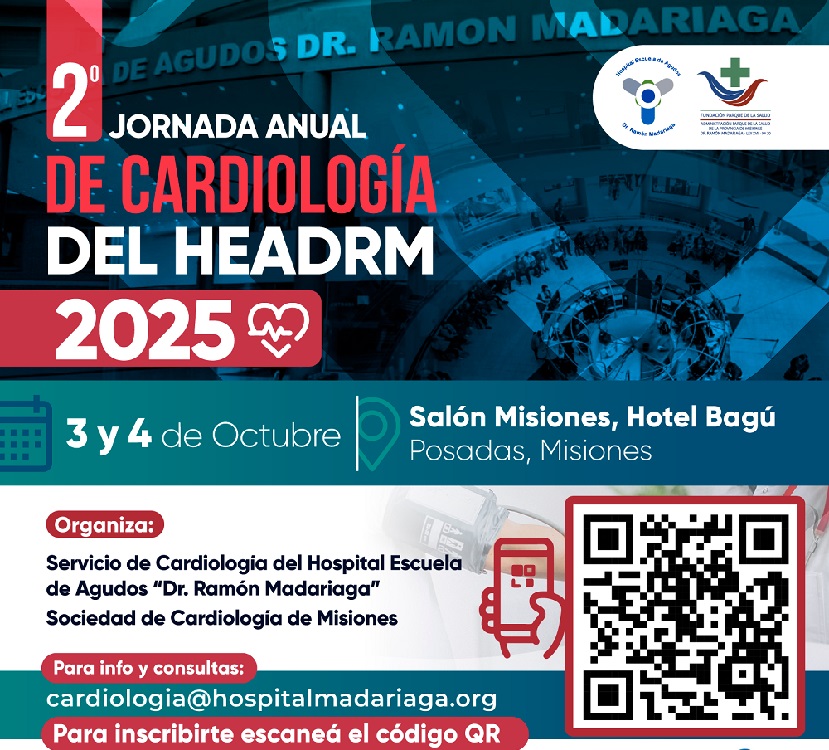 Por otra parte, y en línea con esta campaña de concientización, el Servicio de Cardiología del Madariaga organiza las Segundas Jornadas de Cardiología, que se llevarán a cabo los días 3 y 4 de octubre en el Salón Misiones del hotel ubicado sobre la calle Bolívar, casi Junín, de la ciudad de Posadas.