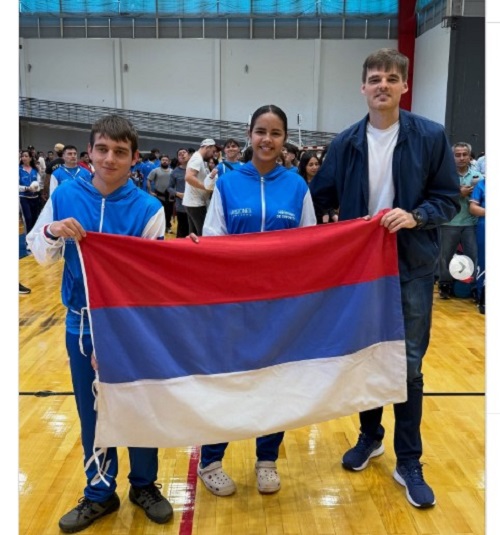 En primer lugar, Nicole Ortellado, quien compite en handball femenino de playa y es nacida en Candelaria explicó que “La verdad que es un un orgullo ser la abanderada de la delegación misionera no me esperaba esto. Estaba con mis amigos y mi profesora me llama y me dice: ‘Cámbiate rápido y peinate”; y le digo ¿por qué?: Y ella me dice sos la abanderada de Misiones. No le creí al principio realmente”.