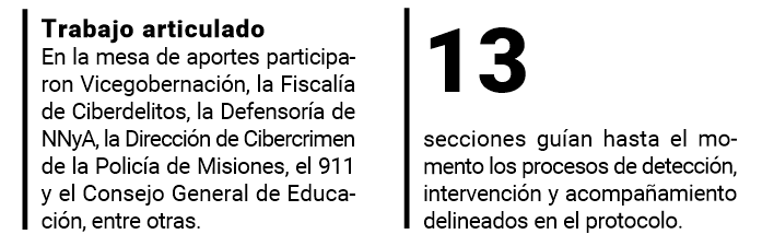 Para dar respuesta a esta problemática desde el ámbito escolar, la Dirección de TIC del Ministerio de Educación provincial informó que elabora un protocolo para la prevención, detección y actuación ante riesgos y violencias digitales en las escuelas, con la colaboración de otras instituciones.