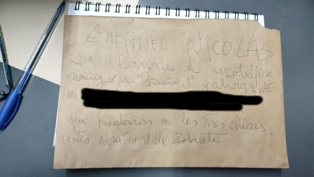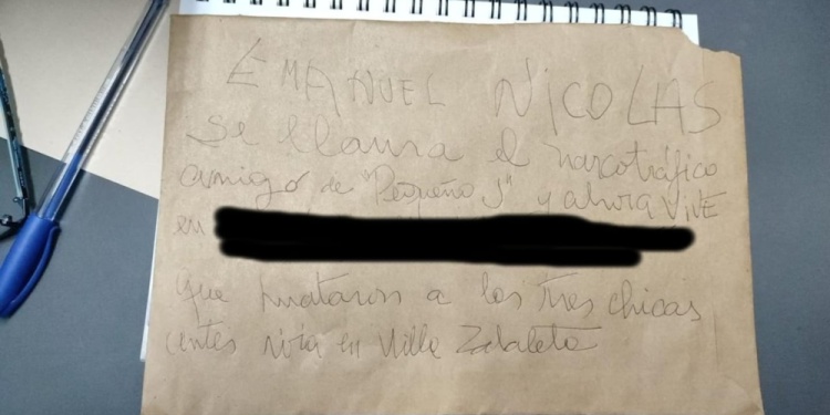 “Emanuel Nicolás se llama el narcotráfico amigo de ”Pequeño J”“, alertó la carta escrita en un papel madera.