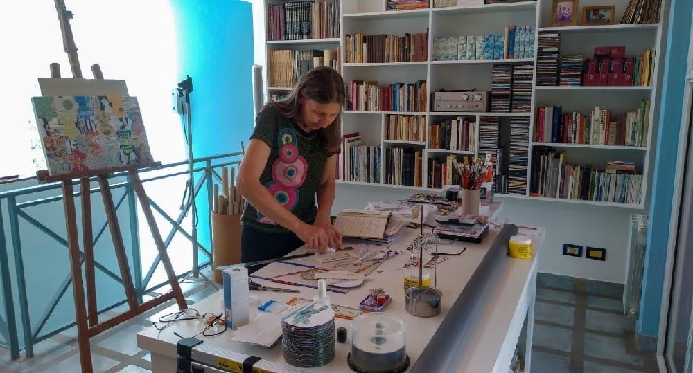 “Mi trabajo se centra en reutilizar papeles que la mayoría de las personas normalmente tirarían, tales como hojas sueltas de libros, folletos de todo tipo, diarios, revistas, mapas, guías telefónicas, fotos, diapositivas, billetes, cuadernos infantiles y, cualquier otro papel que parezca insignificante, dándoles una nueva vida y propósito a través del arte”, contó la artista.