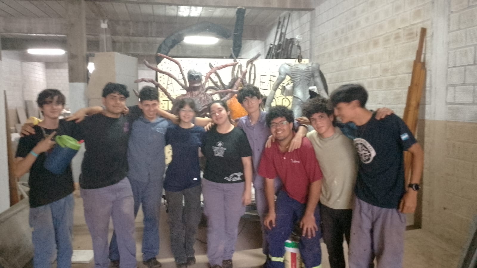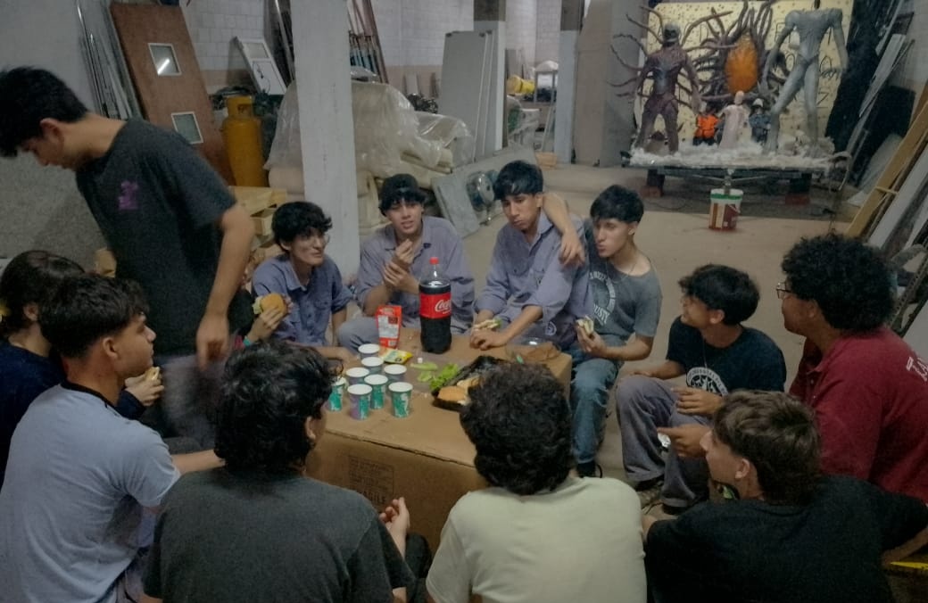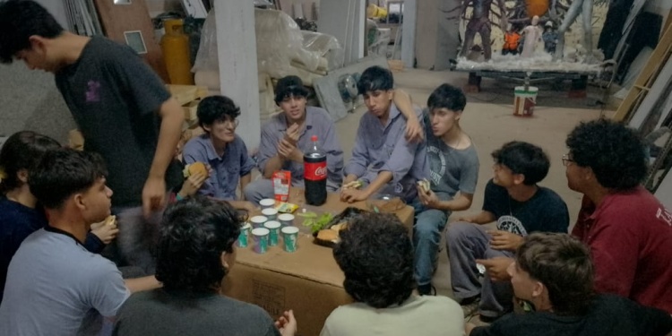 En un gesto de camaradería, la Industrial ofreció un galpón cercano al suyo, donde también trabajan en su propia carroza. Así, los estudiantes de ambas instituciones pasaron a ser vecinos en plena construcción.