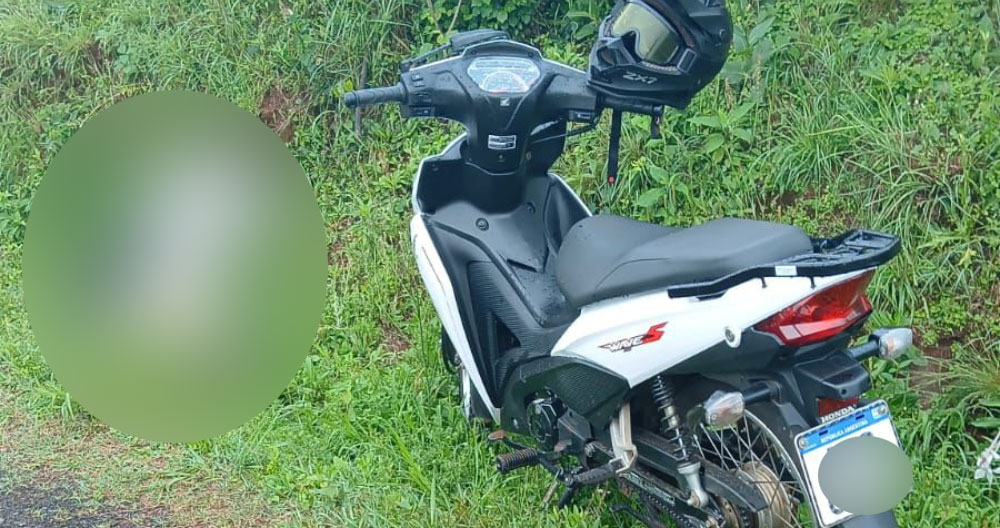 También, había una motocicleta Honda Wave con un casco, estacionada a su lado.