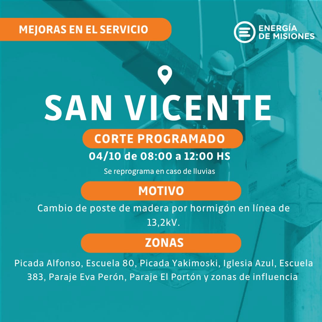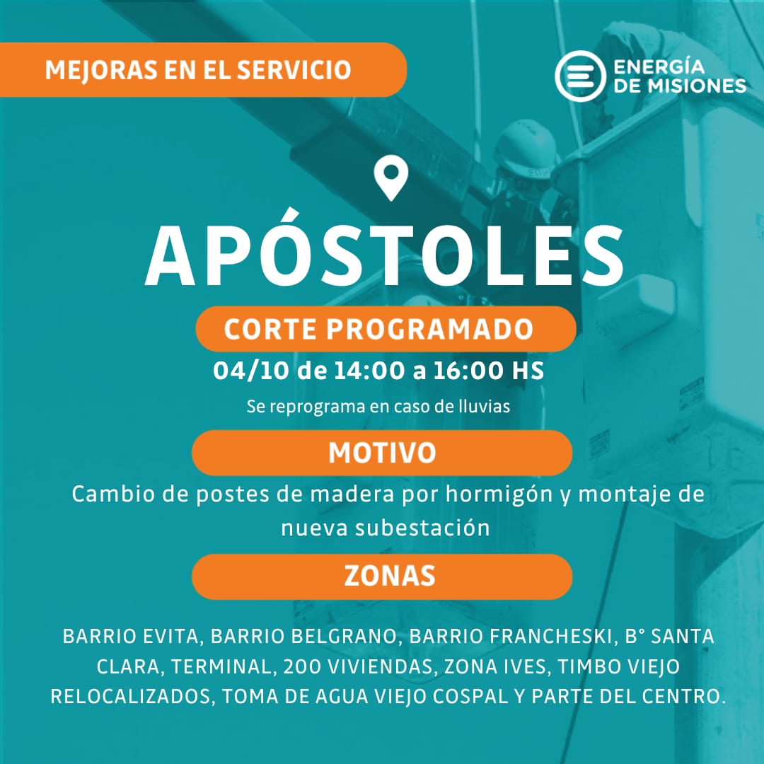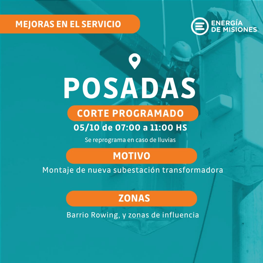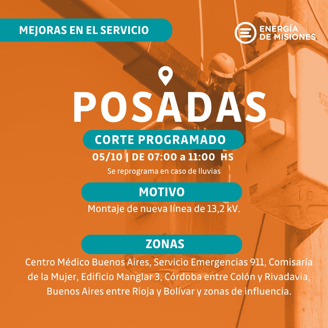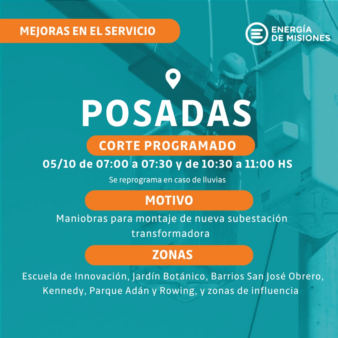 La empresa Energía de Misiones informó que en los próximos días se llevarán a cabo cortes de luz programados en distintos puntos de la provincia, debido a tareas de mantenimiento preventivo y mejoras en las redes eléctricas.