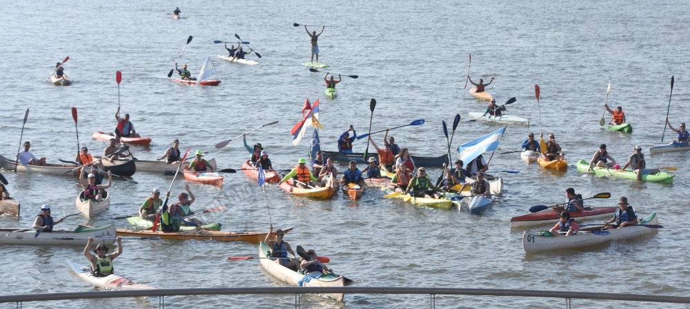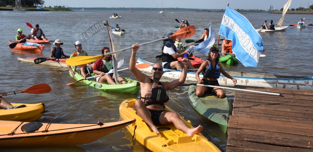 Ese reclamo -articulado por clubes náuticos, agrupaciones de remo, vela, canotaje, futbol infantil y otras asociaciones- tomó la forma de una movilización combinada: embarcaciones que navegaron en paralelo a la costa y caminatas por tierra hasta el monumento al general Andrés Guacurarí, el punto de lucha y resistencia más simbólico de la bahía.