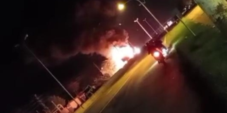 El siniestro fue reportado a las 20:58 horas, y de inmediato se solicitó la presencia de bomberos para controlar el fuego de gran magnitud que consumía el chasis y la carga del vehículo.