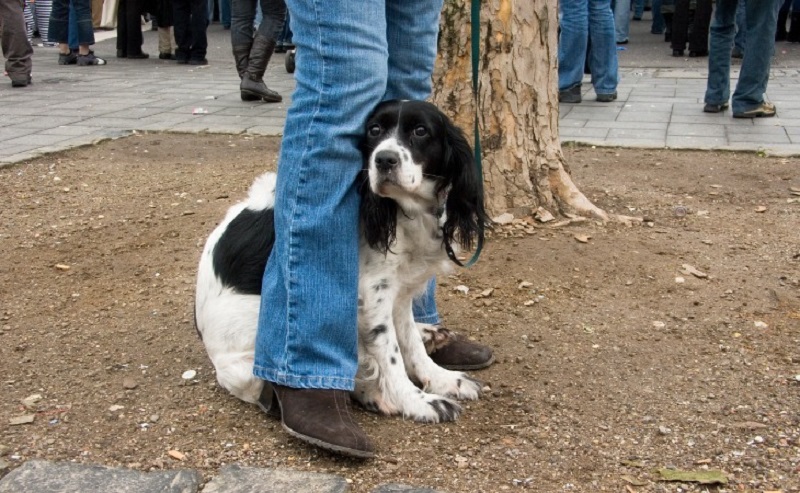 Tu conducta también puede reforzar sus miedos. Evita acariciarlo, abrazarlo o hablarle en tono suave cuando se muestre angustiado frente a otros perros, esto refuerza el miedo ya que estás aprobando su conducta. Que no lo consientas no significa que seas indiferente a lo que está expresando.