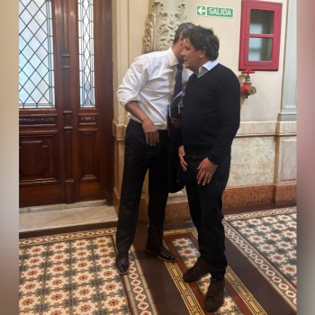 Después de ser amenazado, el diputado Manes sale sonriente a darle besos a los diputados de La Libertad Avanza.