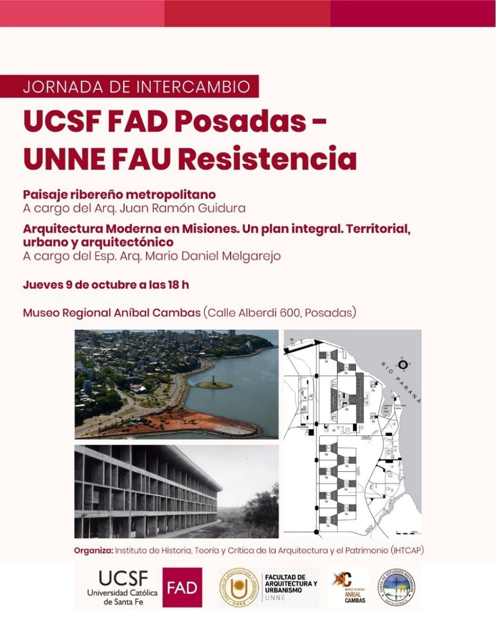 Este jueves, a partir de las 18 horas se realizará una jornada de intercambio académico entre la Facultad de Arquitectura y Diseño de la Universidad Católica de Santa Fe (UCSF – sede Posadas) y la Facultad de Arquitectura y Urbanismo de la Universidad Nacional del Nordeste (UNNE – sede Resistencia) en el salón subsuelo del Museo Regional Aníbal Cambas (Alberdi 600), de Posadas.