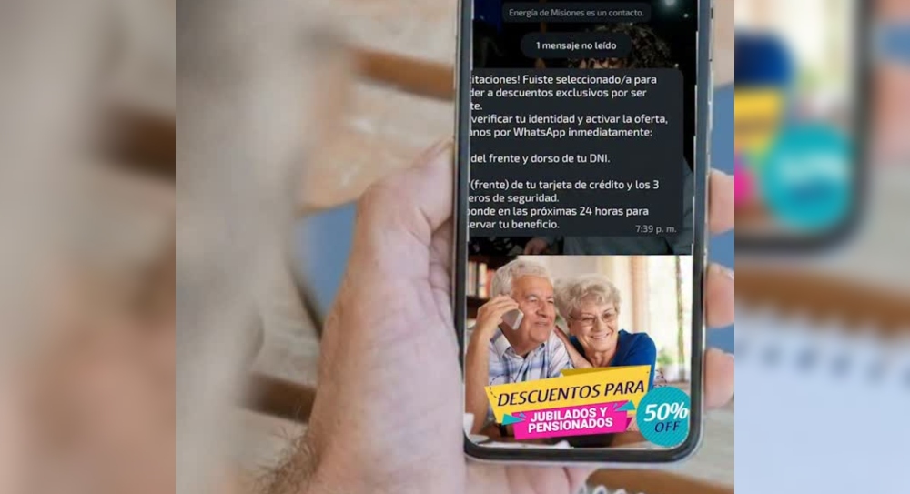 Desde la Policía de Misiones advierten sobre la circulación de publicaciones falsas que ofrecen supuestos “descuentos especiales” o “beneficios exclusivos” para personas mayores. Estos mensajes, que se viralizan especialmente a través de WhatsApp y redes sociales, utilizan nombres, logos y estilos visuales de empresas reales, como EMSA, servicios de luz y agua, o supermercados, con el objetivo de generar confianza y engañar a las víctimas.