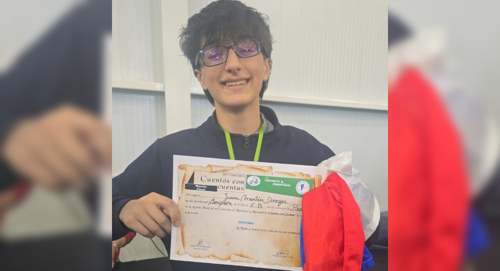 Un alumno misionero se consagró campeón en el Certamen Nacional de Literatura y Matemática “Cuentos con Cuentas”, que tuvo lugar en la Falda, Córdoba. Se trata de Juan Martín Dreger, que cursa primer año del Bachillerato Humanista de Posadas, quien viajó con su profesora de Matemática, Elena Barreyro.