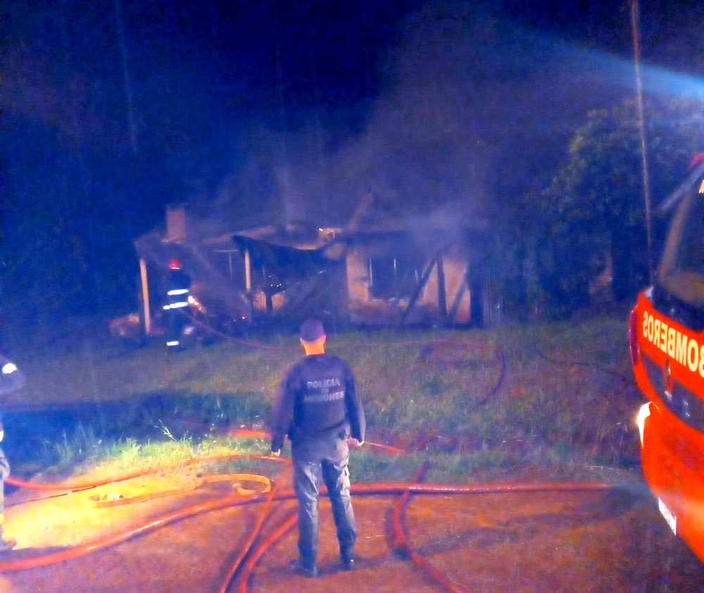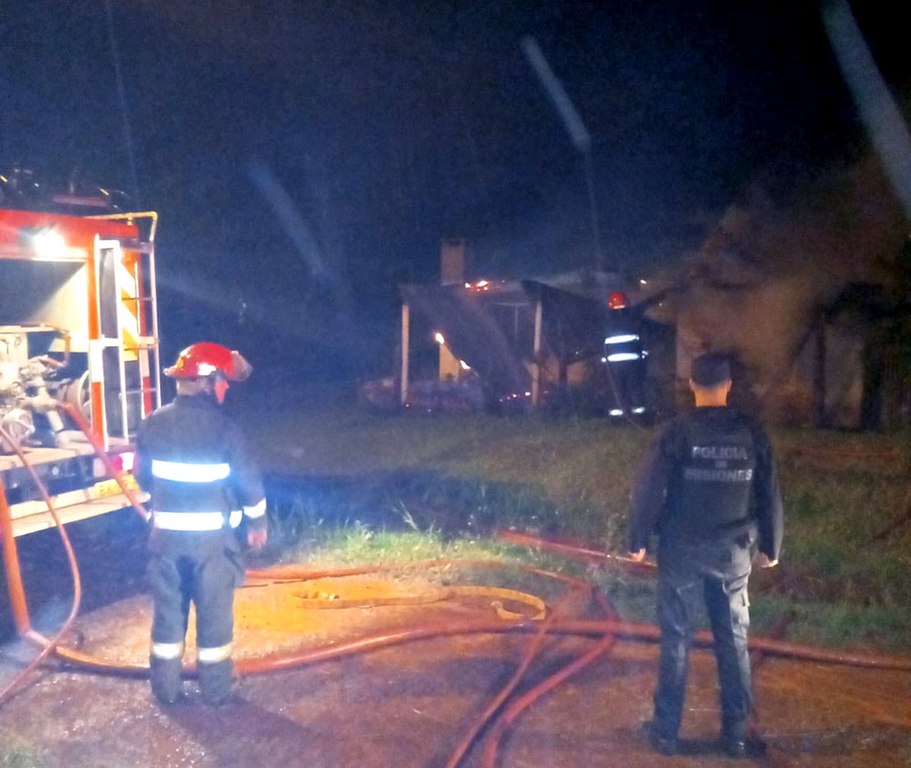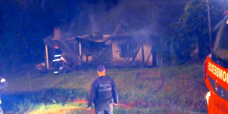 La Policía de Misiones intervino en un incendio registrado esta madrugada en el barrio Tealera de Dos de Mayo, donde una vivienda quedó totalmente consumida por las llamas.