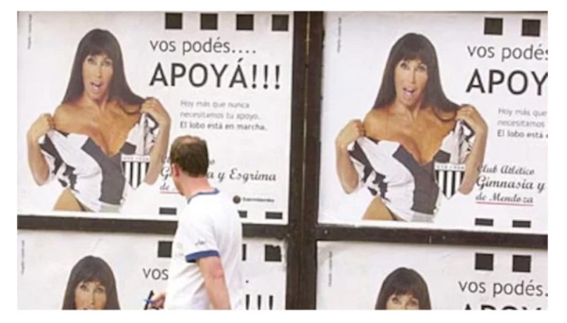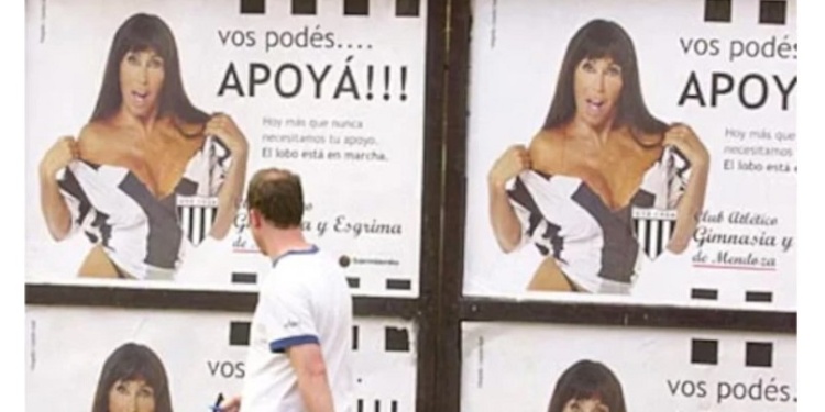 La actriz protagonizó una campaña gráfica con afiches que se vieron en todo el país. En ellos, la vedette posaba con la camiseta del club bajo el lema: “Vos podés… ¡Apoyá!”. La movida mediática incluyó una de sus frases icónicas: “Los hinchas podrán colgarse de mis lolas”, declaró en aquel momento.