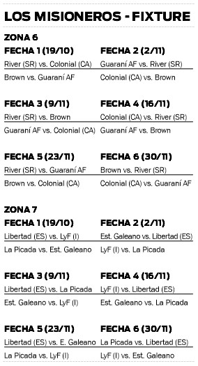 Por su parte, en la Zona 7, se llevará adelante el choque entre La Picada y Estudio Galeano este sábado a las 16.30, en terreno del Tren. En tanto que el otro juego de este grupo, el que deben protagonizar Libertad de El Soberbio y Luz y Fuerza, en las próximas horas confirmarán el día y horario del pleito.