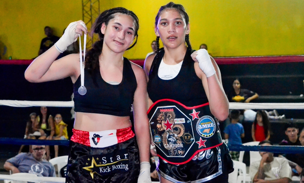 En la de semifondo, en la categoría Femeninos, por el cinturón en 50 Kg, la campeona internacional Nahali De Olivera del Team Báez venció por puntos en fallo unánime a Antonella Méndez del Team Starkick.