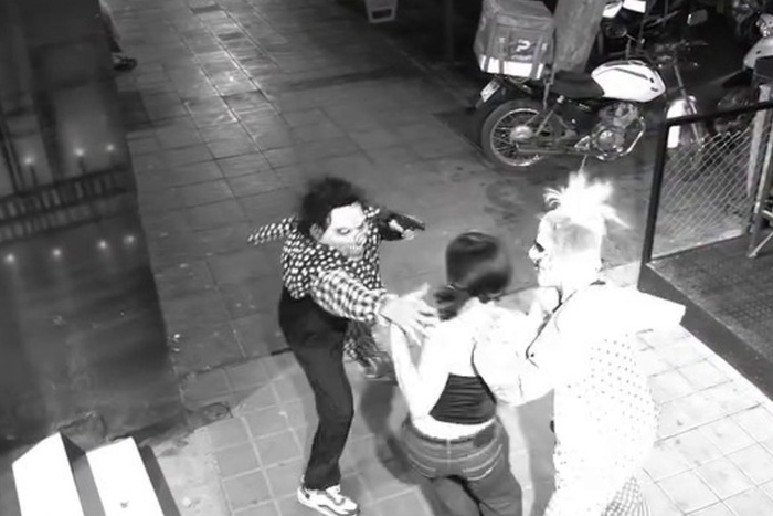 De acuerdo a las imágenes que se terminaron haciendo virales, se muestra a una mujer que es interceptada, por dos personas disfrazadas con máscaras que hacen referencia a la época del año, apenas sale de un edificio. Los individuos la apuntan con un arma, la suben a un auto y la trasladan hasta un sitio cubierto.