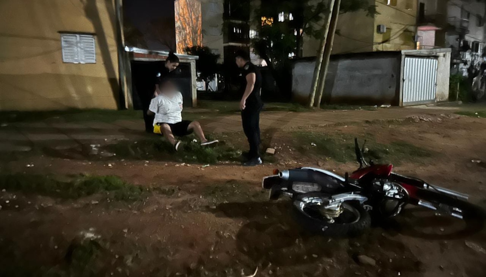 Los policías localizaron la moto en el área conocida como “Plaza del Mate”. Frente a la presencia policial, los ocupantes aceleraron y trataron de huir a alta velocidad, intentando embestir al personal que les ordenaba detenerse.