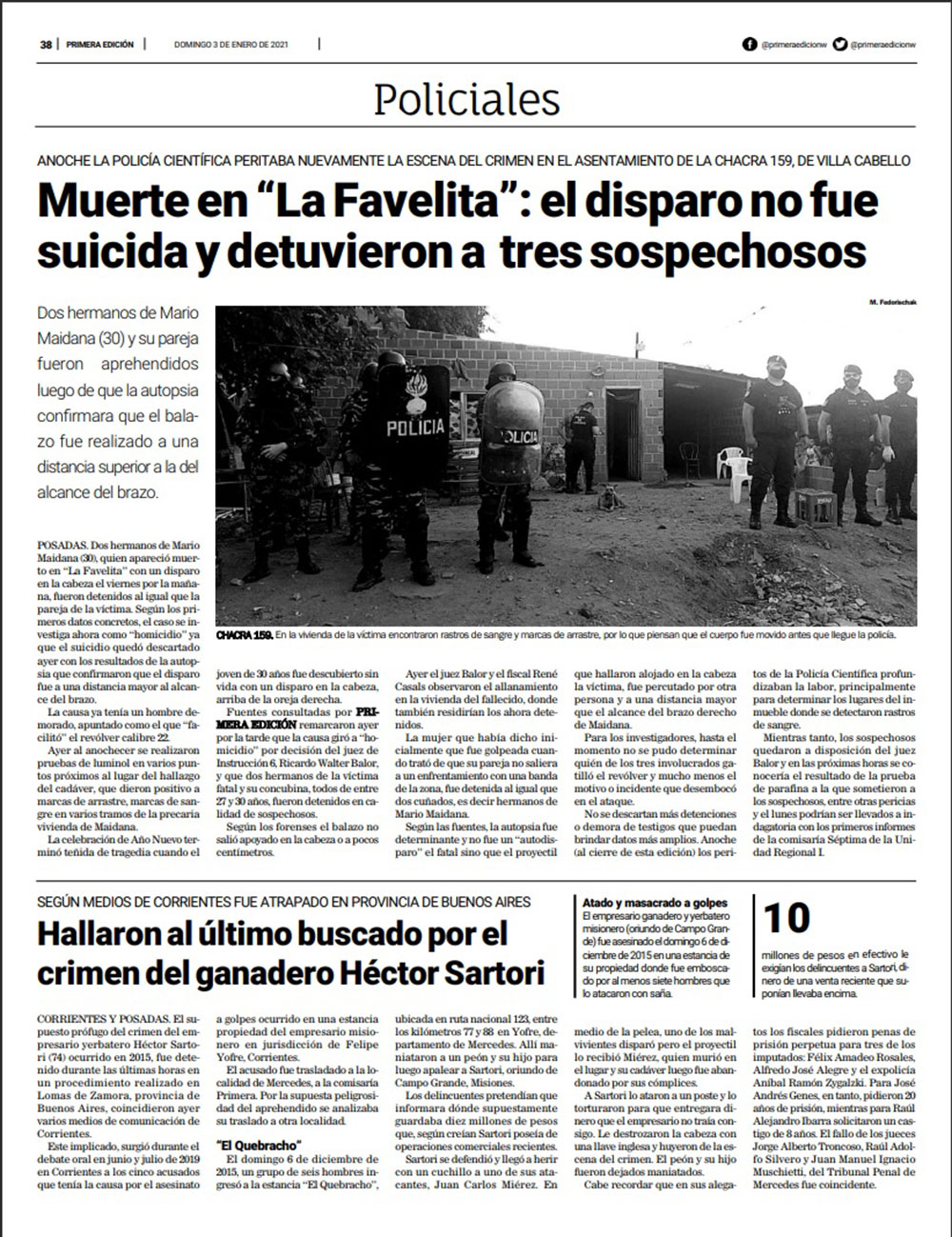 También se destacó que el cuerpo de Maidana fue arrastrado hacia la puerta de la casa por su concubina y un hermano de la víctima, quien habría colaborado con la intención de socorrerlo.