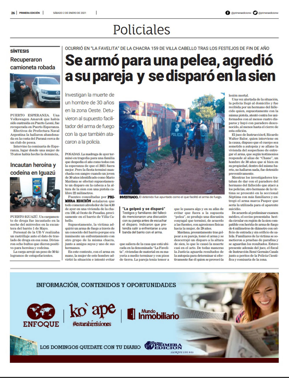 Norma Soledad Bendig firmó ayer, acompañada del defensor oficial 3 Mario Sebastián Ramírez, un acuerdo de juicio abreviado y una condena de ocho años y seis meses de prisión por la muerte de su pareja, Mario Omar Maidana, el 1 de enero de 2021 en la zona oeste de Posadas.