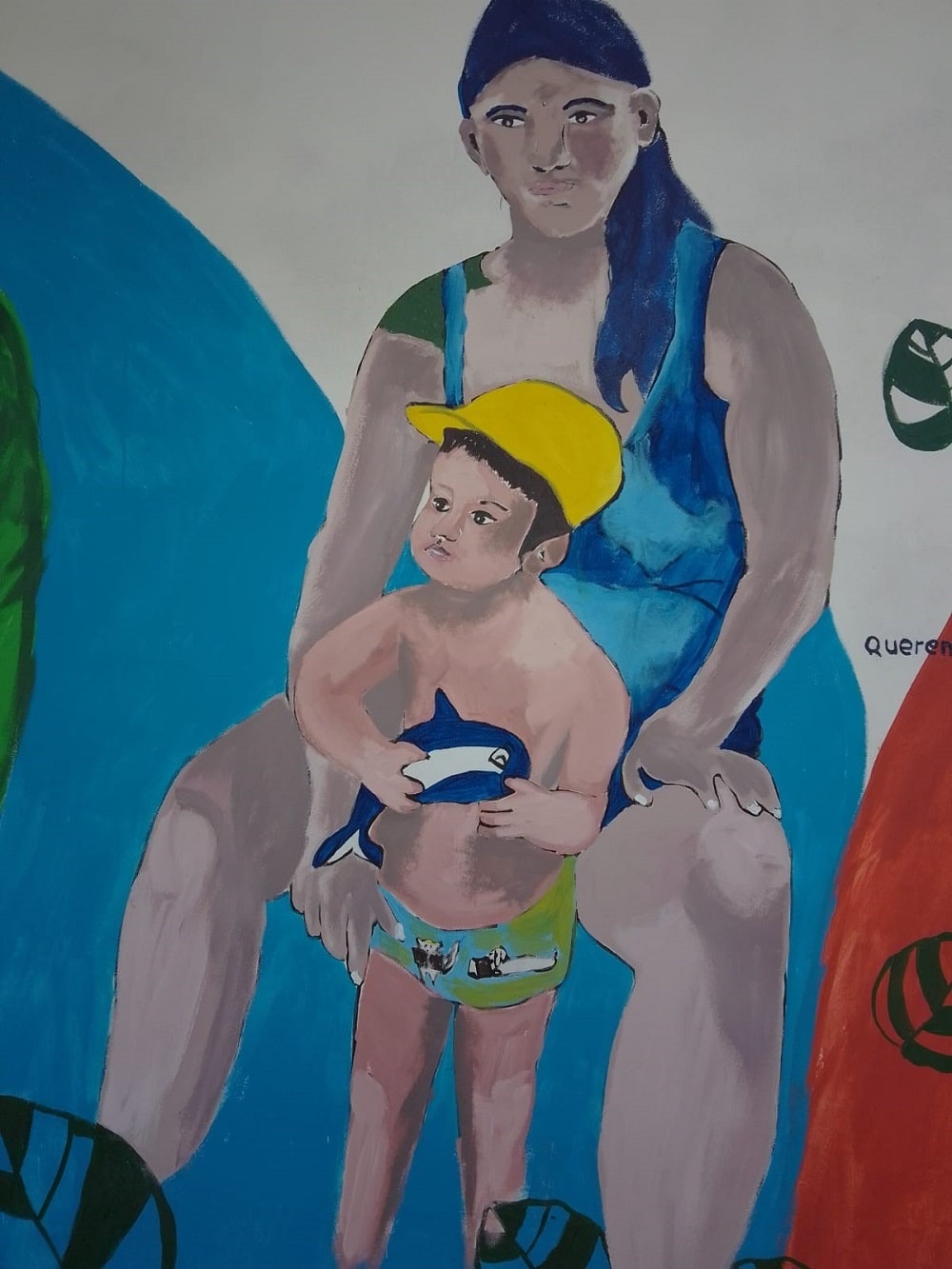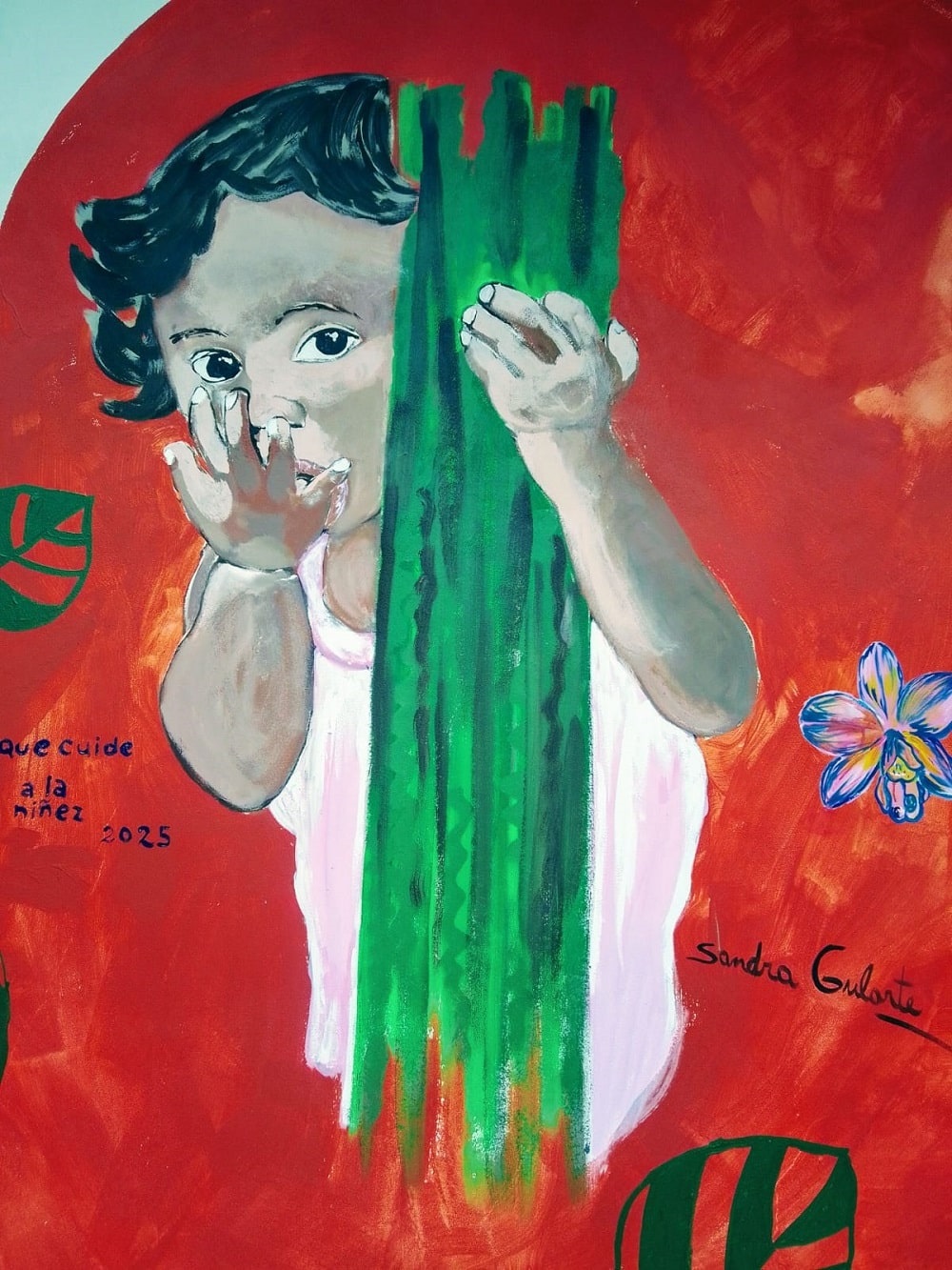 “Será una explosión de color para motivar a las madres que están atravesando las dificultades de sus bebés recién nacidos”, explicó Sandra Gularte, quien comparte los almuerzos con las madres mientras pinta. “En esos diálogos surgen nuevas imágenes, nuevas historias para sumar al mural. Una madre de San Vicente me pidió incluir la flor que lleva el nombre de su beba, Cataleya, la reina de las orquídeas misioneras”, agregó la artista.