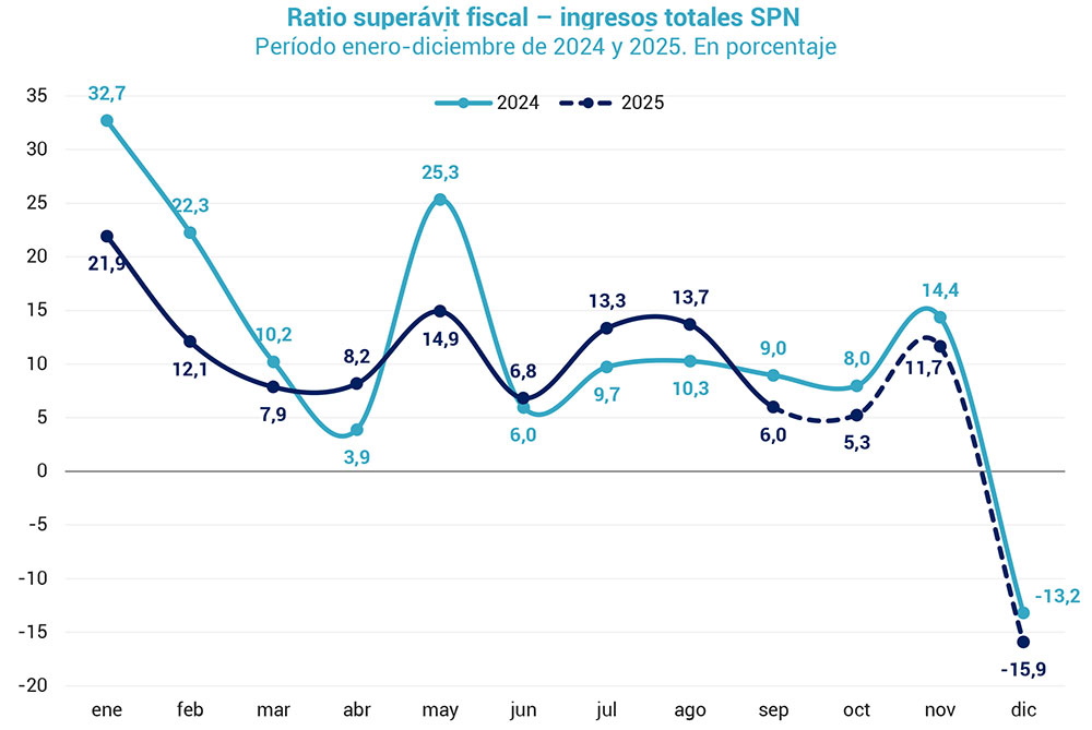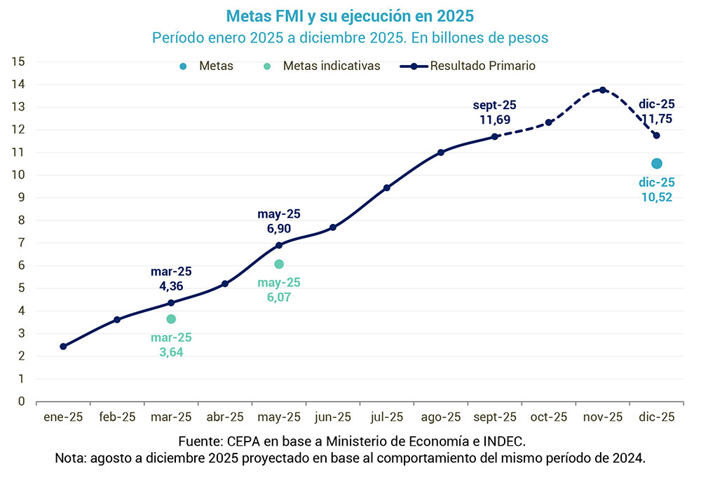 El informe señala que el Fondo Monetario Internacional (FMI) eliminó la meta intermedia de septiembre y mantuvo como estricta la de diciembre, que exige un superávit acumulado de $10,52 billones. A septiembre, el SPN acumulaba $11,69 billones, superando en $1,17 billones el objetivo del organismo.