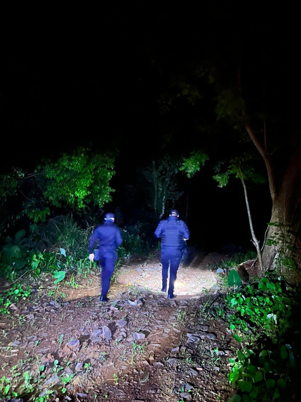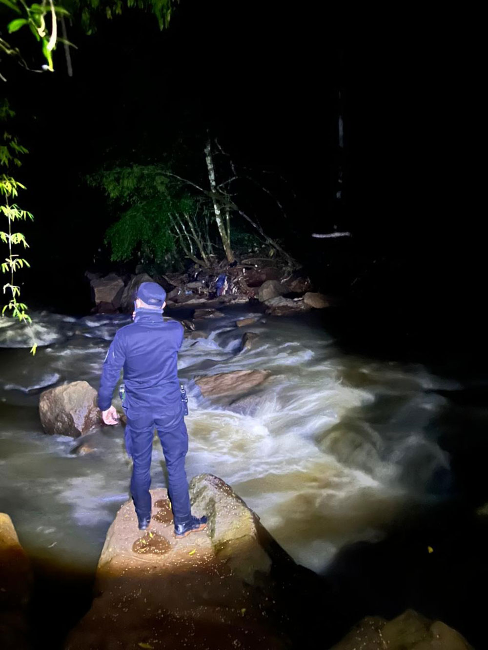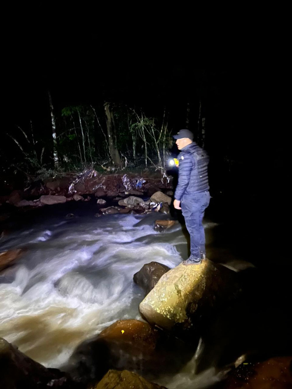 De inmediato, la fuerza provincial activó un vasto operativo de rastrillaje que se extendió durante toda la madrugada. Distintas divisiones y grupos especiales se internaron a pie, con la oscuridad de la noche, en zonas de monte y terrenos boscosos a lo largo de un arroyo de caudal fuerte y aguas turbias. La búsqueda abarcó un perímetro de más de cinco kilómetros, revisando chacras y senderos tanto río arriba como abajo.