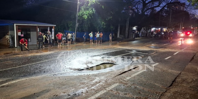 Efectivos policiales, bomberos y personal de mantenimiento intervinieron esta tardes en la intersección de las avenidas Lavalle y Urquiza, en la Chacra 43 de Posadas, donde la rotura de un caño provocó el hundimiento del asfalto, anegamiento en una vivienda y complicaciones en el tránsito de la zona.