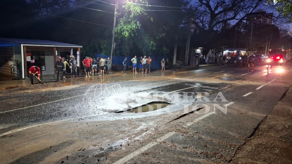 Efectivos policiales, bomberos y personal de mantenimiento intervinieron esta tardes en la intersección de las avenidas Lavalle y Urquiza, en la Chacra 43 de Posadas, donde la rotura de un caño provocó el hundimiento del asfalto, anegamiento en una vivienda y complicaciones en el tránsito de la zona.