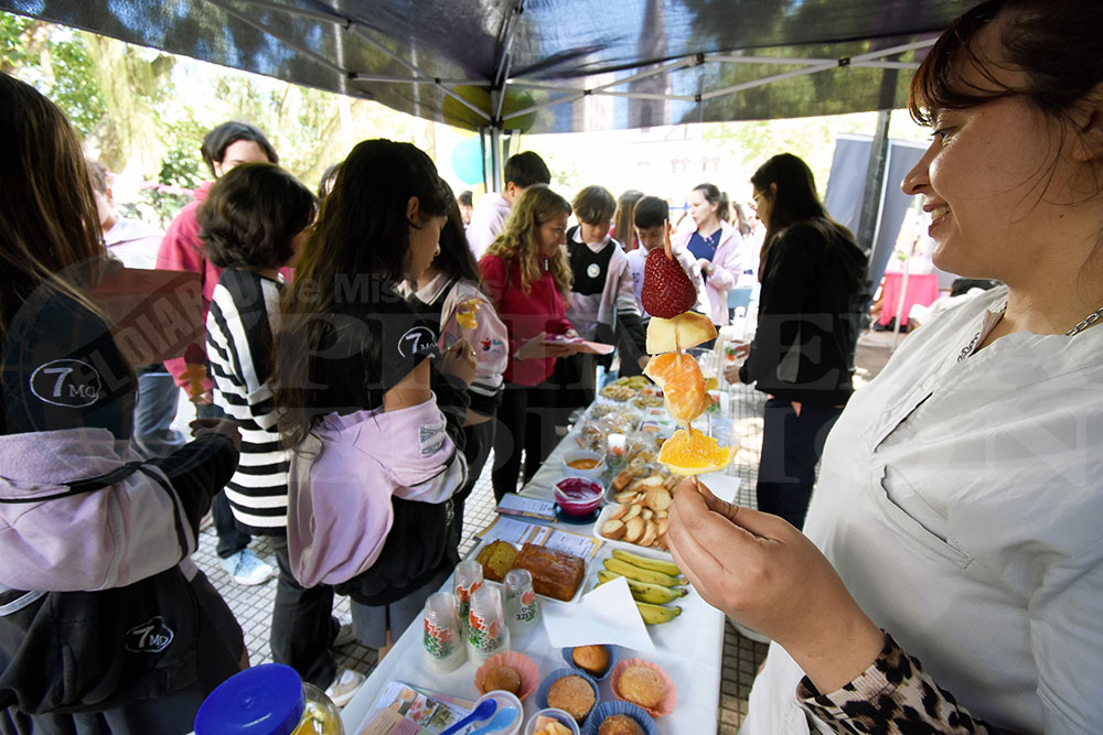 Cada mes de octubre, en Misiones se celebra la Semana de la Alimentación Saludable. Este año, el mal tiempo postergó las actividades, pero ayer la plaza 9 de Julio se colmó de stands y personas interesadas en aprender a alimentarse mejor.