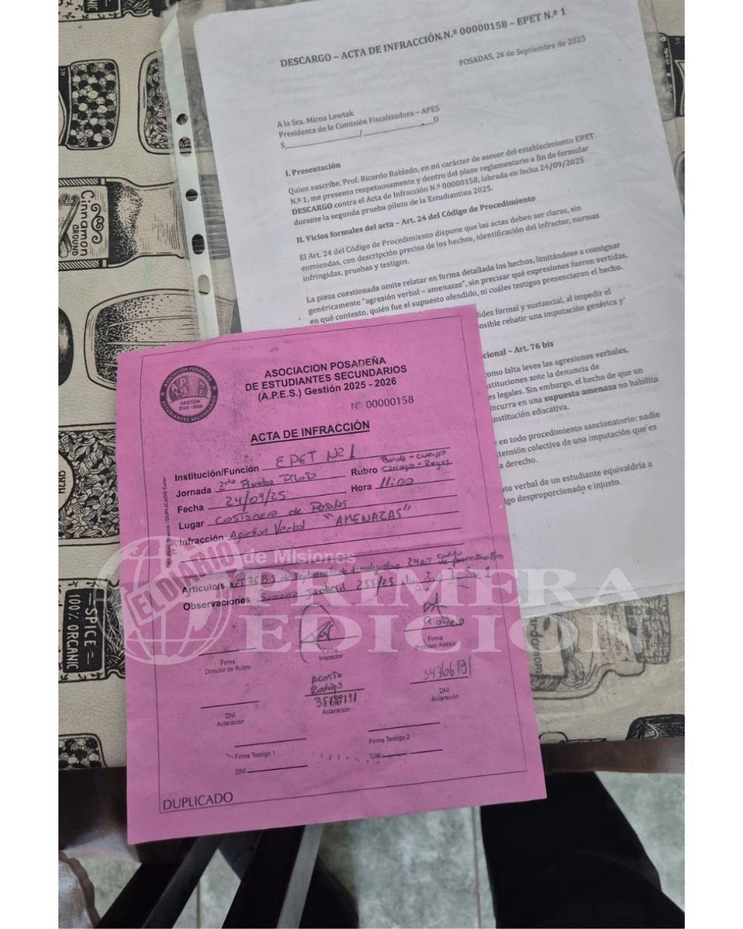 La Escuela Industrial EPET N°1 de Posadas denunció públicamente una sanción aplicada por la Asociación Posadeña de Estudiantes Secundarios (APES) que, según afirman, fue impuesta sin sustento y sin que la institución haya recibido respuesta formal a los descargos presentados hace casi un mes.