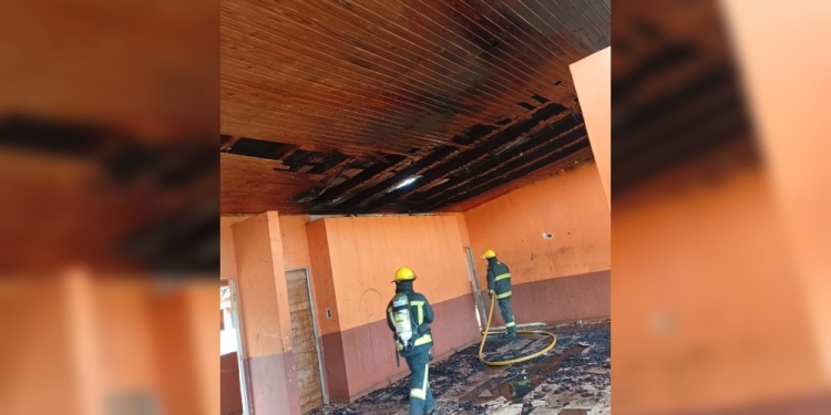 El hecho ocurrió alrededor de las 14:20 de este jueves, cuando los efectivos de la División Bomberos y del cuartel de Bomberos Voluntarios de esa localidad llegaron al lugar con dos unidades para controlar el fuego que afectaba parte de la estructura de machimbre del inmueble.