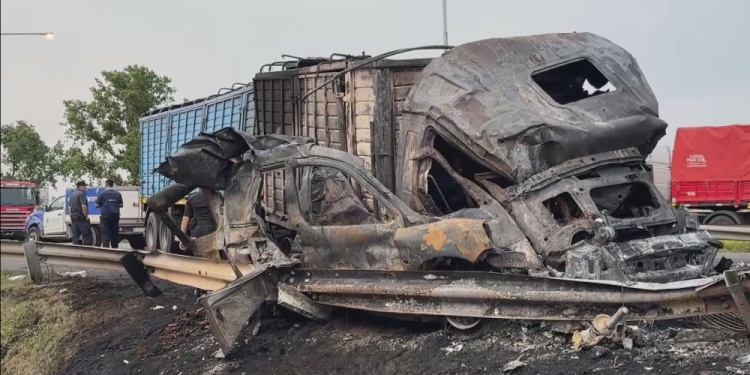 Un accidente fatal ocurrió en la tarde de este jueves sobre la ruta nacional 9, a la altura del partido bonaerense de Campana, cuando un camión se cruzó de carril, aplastó a un automóvil que se incendió y provocó la muerte de cinco personas.