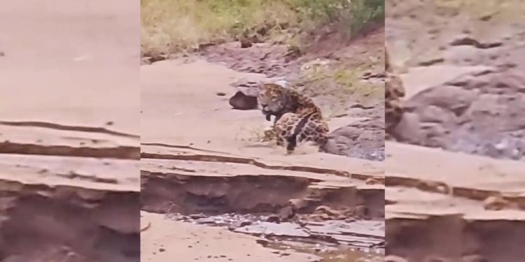 Por las características de sus manchas y el collar de rastreo que lleva colocado, se trataría de “Kunumí”, uno de los ejemplares monitoreados por el Proyecto Yaguareté, iniciativa que busca estudiar los desplazamientos y el comportamiento de esta especie en peligro de extinción.