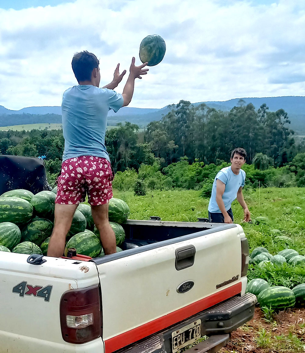 Lucas Lombardo, técnico agropecuario y productor de sandías desde hace siete años, explicó que en Cuña Pirú, sobre la ruta 7, existe una cuenca consolidada desde la década del 90, integrada por colonos dedicados exclusivamente a esta producción, asociada a la mandioca. “Son exproductores de tabaco que se reconvirtieron y empezaron a plantar como otra alternativa productiva”, comentó.