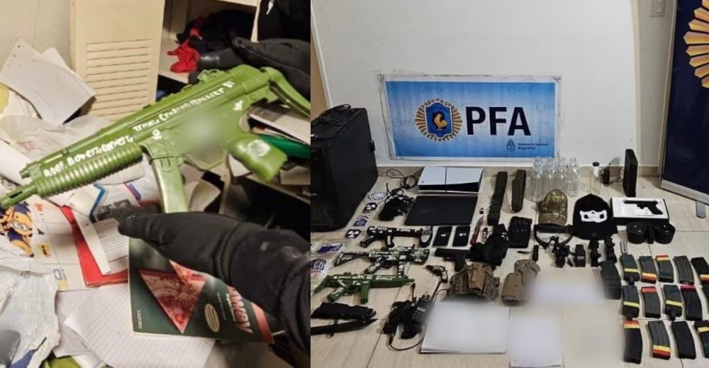 Había réplicas de armas de fuego, cuchillos, municiones, gas pimienta, explosivos tipo “molotov”, dos celulares, una notebook, un pendrive y varios cuadernos con anotaciones inquietantes.