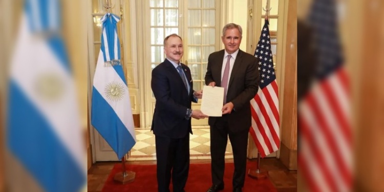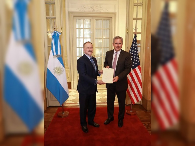 El embajador de los Estados Unidos en la Argentina, Peter Lamelas, entregó hoy copia de cartas credenciales al canciller Pablo Quirno y así completó el trámite que lo formalizó en el cargo.