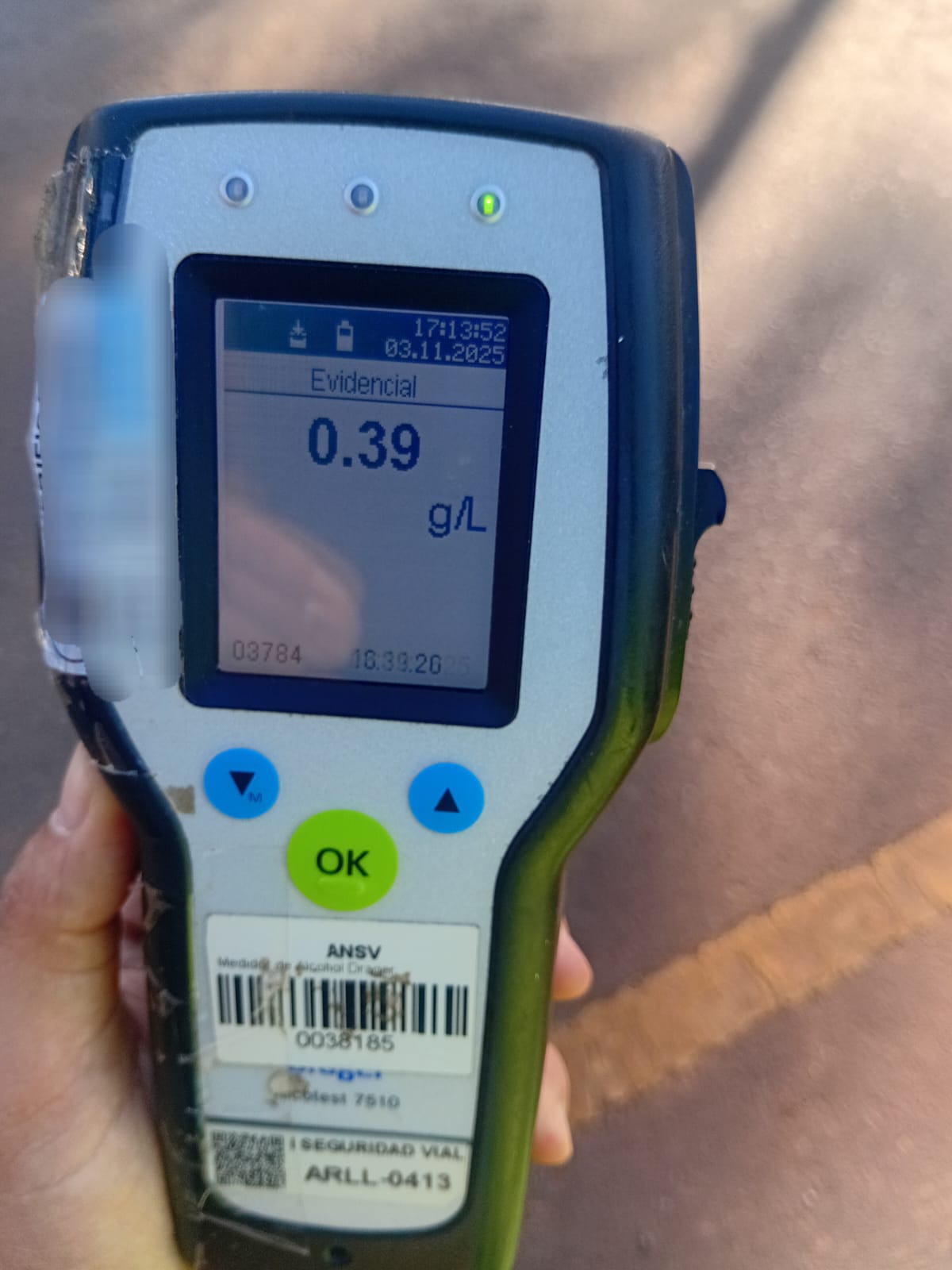 De acuerdo a fuentes policiales, alrededor de las 17:00, los agentes detuvieron la marcha de un colectivo Mercedes Benz perteneciente a una empresa que cubre el trayecto Posadas–Oberá. Al conductor, de 27 años, se le practicó un test de alcoholemia que arrojó 0,39 g/l de alcohol en sangre, cuando el límite permitido para choferes profesionales es cero.