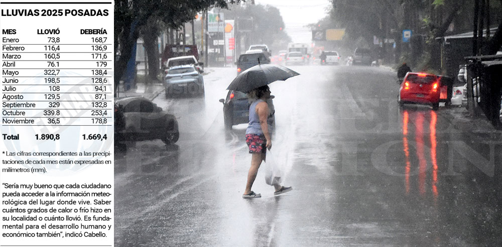 Las estadísticas meteorológicas permitieron conocer que en la capital provincial, con las lluvias registradas el último fin de semana, el acumulado anual de precipitaciones alcanza los 1.890,88 mm, superando en casi el 10% a la media histórica (1.873,2 mm), cuando aún restan 57 días para concluir el 2025, lo que hace prever claramente que esa cifra se ampliará en las próximas semanas. Además, octubre fue el mes con mayor cantidad de lluvias del año, con 339,8 mm.