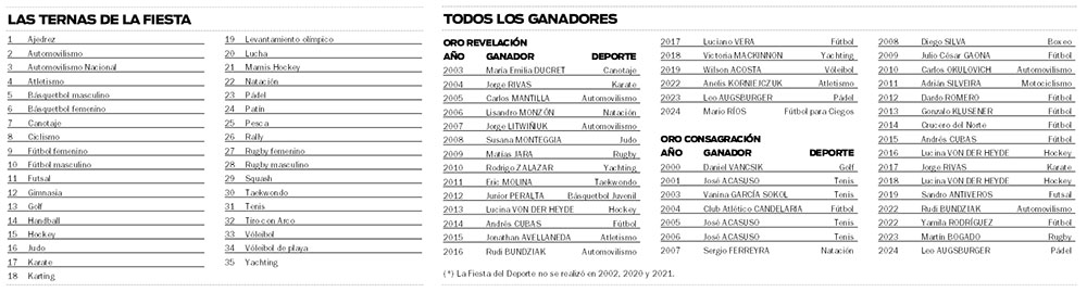 Desde 2003, la Fiesta del Deporte sumó el Oro Revelación, que busca reconocer a la proyección y a los deportistas que dieron el salto durante la temporada.
