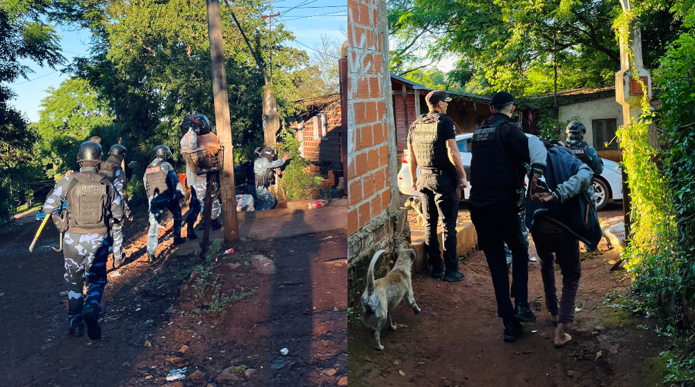 Con orden del Juzgado de Instrucción Nº 1 de Oberá, a cargo del Dr. Horacio Heriberto Alarcón, se conformó un grupo de irrupción con 35 efectivos pertenecientes a distintas comisarías y unidades especiales, quienes ingresaron en tres viviendas ubicadas sobre la calle Serrano y zonas adyacentes.