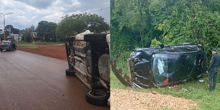El primer incidente se registró en Oberá, cerca de las 7.50 horas, sobre la avenida Las Américas. Por causas que aún son materia de investigación, el conductor de un Toyota Etios, un hombre de 58 años, perdió el control del rodado. El vehículo terminó volcado sobre su lateral derecho en la calzada.