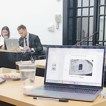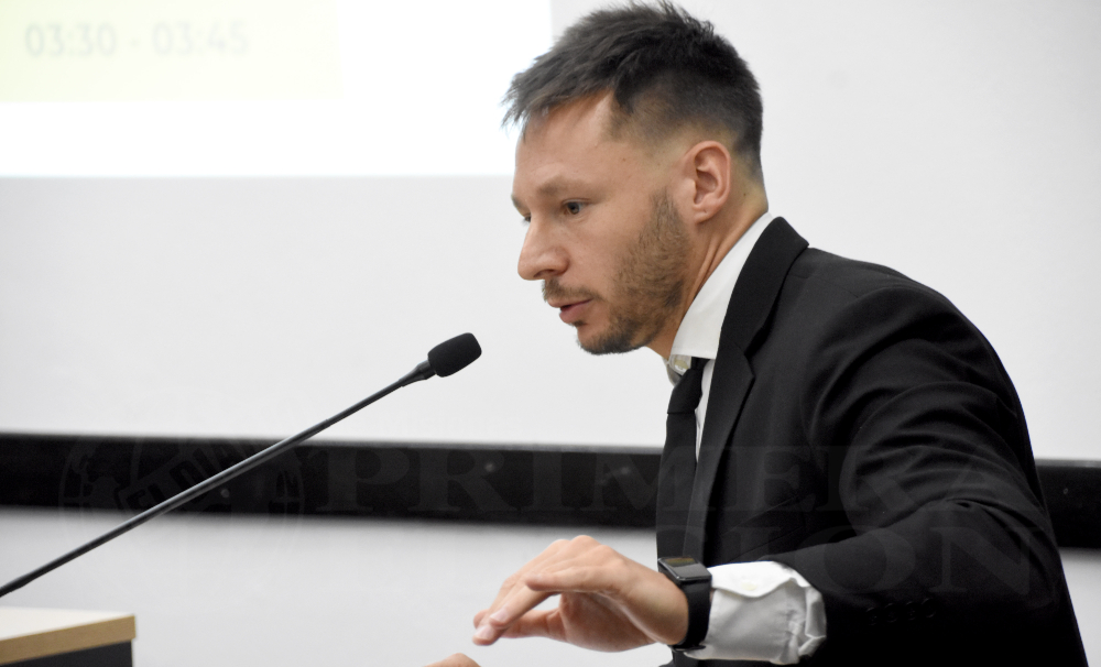 Ante los jueces Augusto Gregorio Busse, presidente, y los vocales Fernando Luis Verón y Miguel Mattos, Glinka desplegó su acusación apuntalado con una proyección de infografías con imágenes, horarios y roles de cada uno de los acusados, testigos clave, afirmaciones e interrogantes.